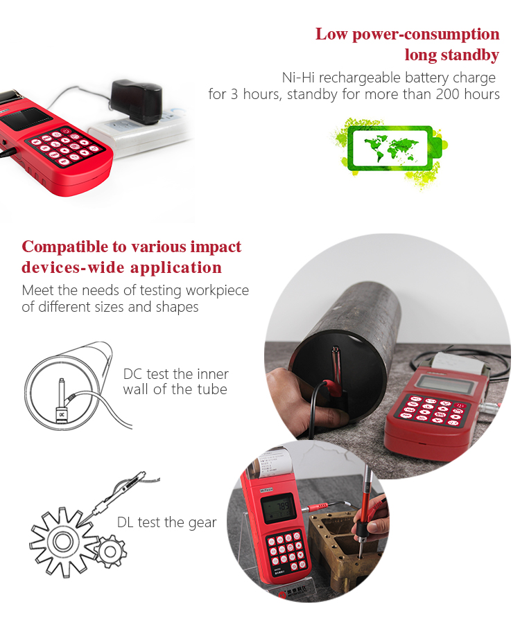 Instrument Featuresl Based on the principle of Leeb hardness testing theory. It can measure the Leeb hardness of all metallic materials.