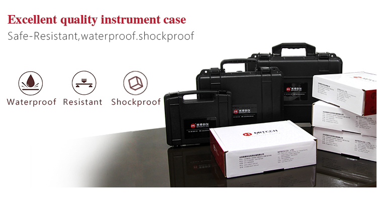 | The instrument case of Mitech series portable leeb hardness, length 35.5cm, width 19cm, height 11cm, weight of 1.5kg. Adopt ABS engineering plastic, It has excellent peroformance like waterproof, shockproof, excellent heat resistance and low temperature resistance. It can effectively prevent oil, dust and corrosion in harsh environment. Its size is in accordance with the standards for aviation and train carrying (capable of putting under the seat and on the luggage rack), it is safe, reliable and stable. |