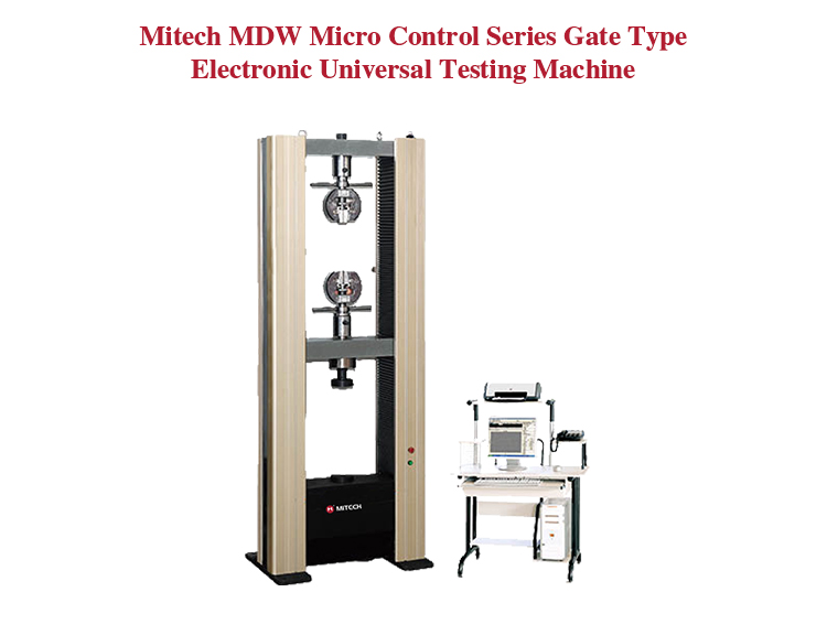 Mitech MDW micro control series gate type electronic universal testing machine, through the computer control motor drive screw, equipped with the corresponding auxiliary for metal, non-metallic and composite materials for pull, pressure, bending and other mechanical properties test (Tensile test carried out between the upper beam of the main body and the moving beam. Compression and bending tests carried out between the table of the host and the moving beam). It’s adopts the built-in controller, AC servo motor, by computer-aided means to achieve powerful function with stable performance, strong structure, high reliability, simple operation, high degree of automation. It’s widely used in metal and non-metallic processing industry, quality inspection departments, scientific research and other areas of higher education institutions and it’s a necessary professional precision testing equipment for improve production efficiency and save production costs.