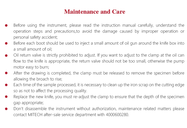 l Each time of the sample processed, it is necessary to clean up the iron scrap on the cutting edge so as not to affect the
