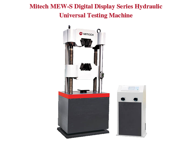Mitech MEW-S digital display series hydraulic universal testing machine, by controlling the high-pressure pump to drive the screw movement, equipped with the corresponding auxiliary for metal, non-metallic and composite materials for stretching, compression, bending, cutting, stripping, tear.With using digital processing, high-precision data acquisition and control technology, graphical interface, integrated design, it owns stable performance, strong structure, high reliability, simple operation. Widely used in metal and non-metallic processing industry, quality inspection departments quality testing, scientific research and other areas of higher education institutions.It is the necessary professional precision testing equipment for improving production efficiency and saving production costs.