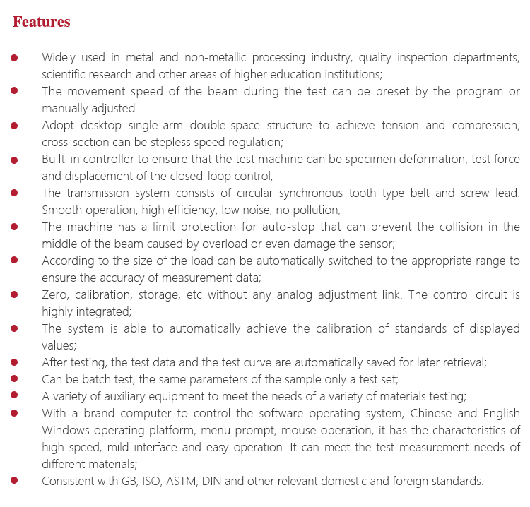 l Adopt desktop single-arm double-space structure to achieve tension and compression, cross-section can be stepless speed regulation;