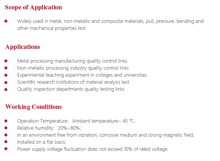 l Test machine is a large precision instruments, should pay attention to water, moisture. Exposed workstations, upper and lower beam parts and attached parts should be coated with anti-rust oil to prevent rust;