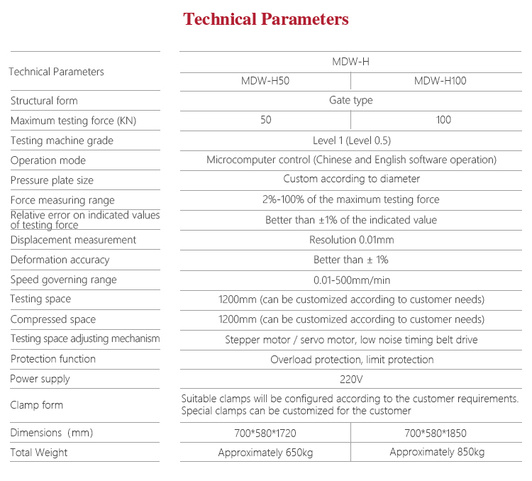 Mitech MDW-H micro control series gate type ring stiffness testing machine.Through the computer control motor drive screw movement, for a variety of pipe ring stiffness, ring flexibility and flat test, while the increase in demand, such as stretching, bending and other functional tests,it use of built-in controller, AC servo motor,stable performance, strong structure, high reliability, simple operation, high degree of automation. Widely used in metal and non-metallic processing industry, quality inspection departments quality testing, scientific research and other areas of higher education institutions, is to improve production efficiency and save production costs necessary professional precision testing equipment.