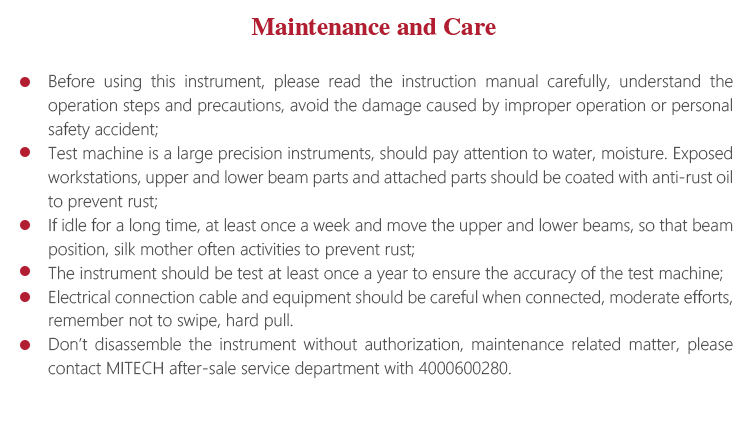 Don’t disassemble the instrument without authorization, maintenance related matter, please contact MITECH after-sale service department with 4000600280.