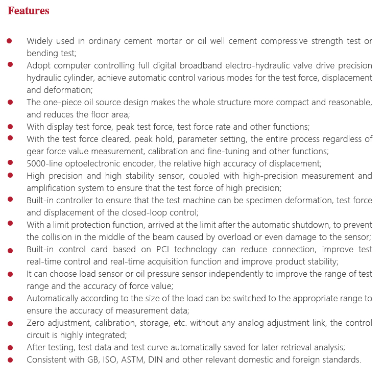 l Widely used in ordinary cement mortar or oil well cement compressive strength test or bending test;