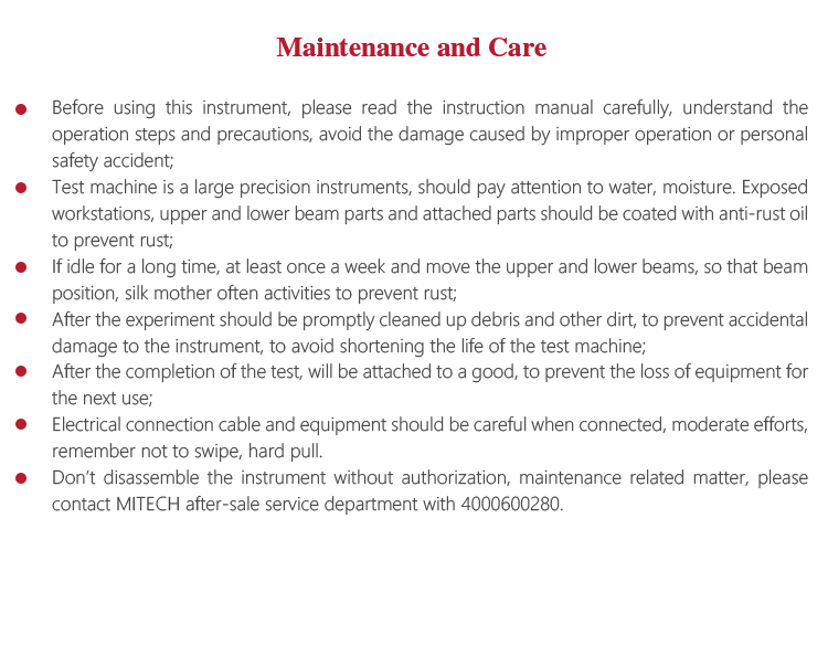l Don’t disassemble the instrument without authorization, maintenance related matter, please contact MITECH after-sale service department with 4000600280.