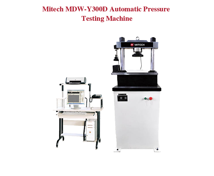 Mitech MDW-Y300D Automatic Pressure Testing Machine, equipped with corresponding auxiliary tools for compressive strength test or anti-folding test for ordinary cement mortar or oil well cement. It adopts built-in controller, AC servo motor, stable performance, strong structure, high reliability, simple operation, high degree of automation, with the help of a computer aided method to achieve powerful features. It is widely used in the field of hardness testing of building materials, quality inspection of quality inspection department and scientific research experiment of institutions of higher learning. It is a professional precision testing instrument that guarantees the quality of construction and improves the safety performance.