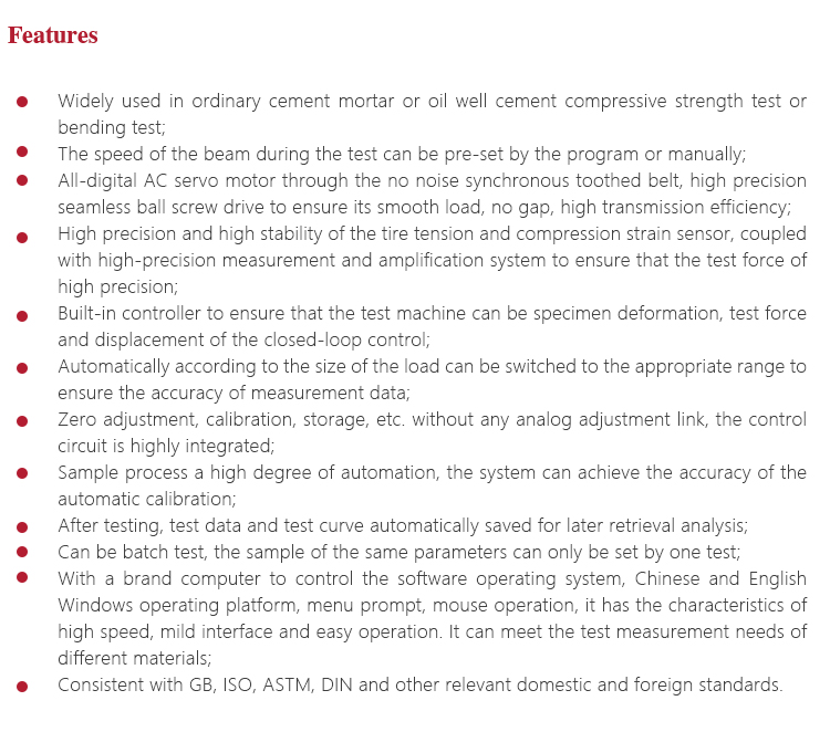 l Widely used in ordinary cement mortar or oil well cement compressive strength test or bending test;