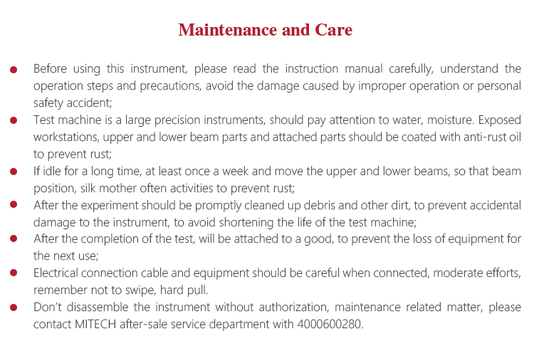 l Don’t disassemble the instrument without authorization, maintenance related matter, please contact MITECH after-sale service department with 4000600280.