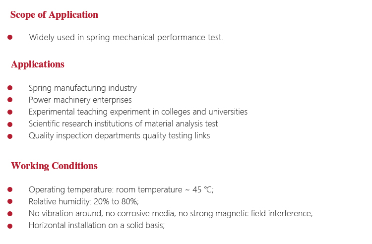 Instrument Featuresl Widely used in spring manufacturing, low-voltage electrical appliances, power machinery, institutions of higher learning and