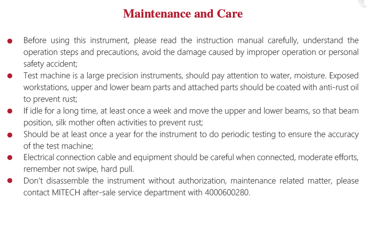 Don’t disassemble the instrument without authorization, maintenance related matter, please contact MITECH after-sale service department with 4000600280.