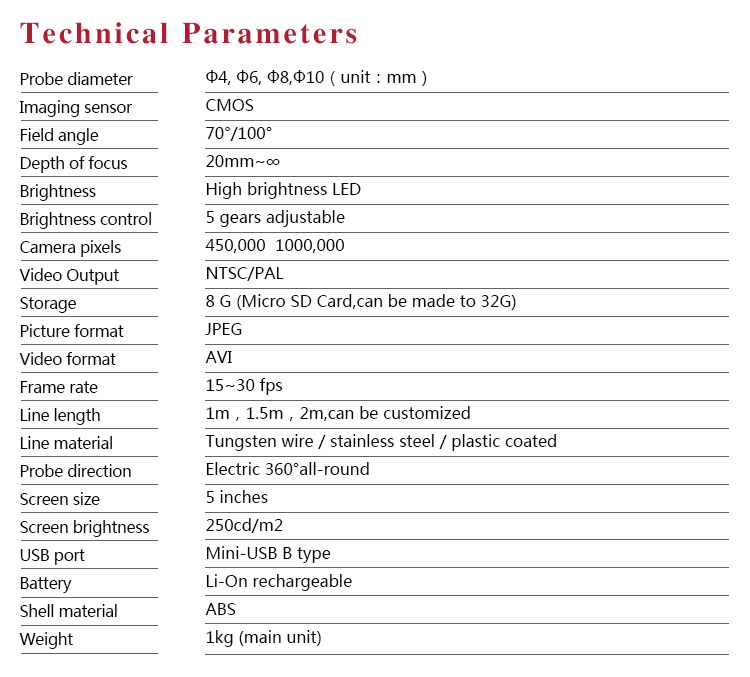 | Probe diameter | ?4, ?6, ?8,?10(unit:mm) |