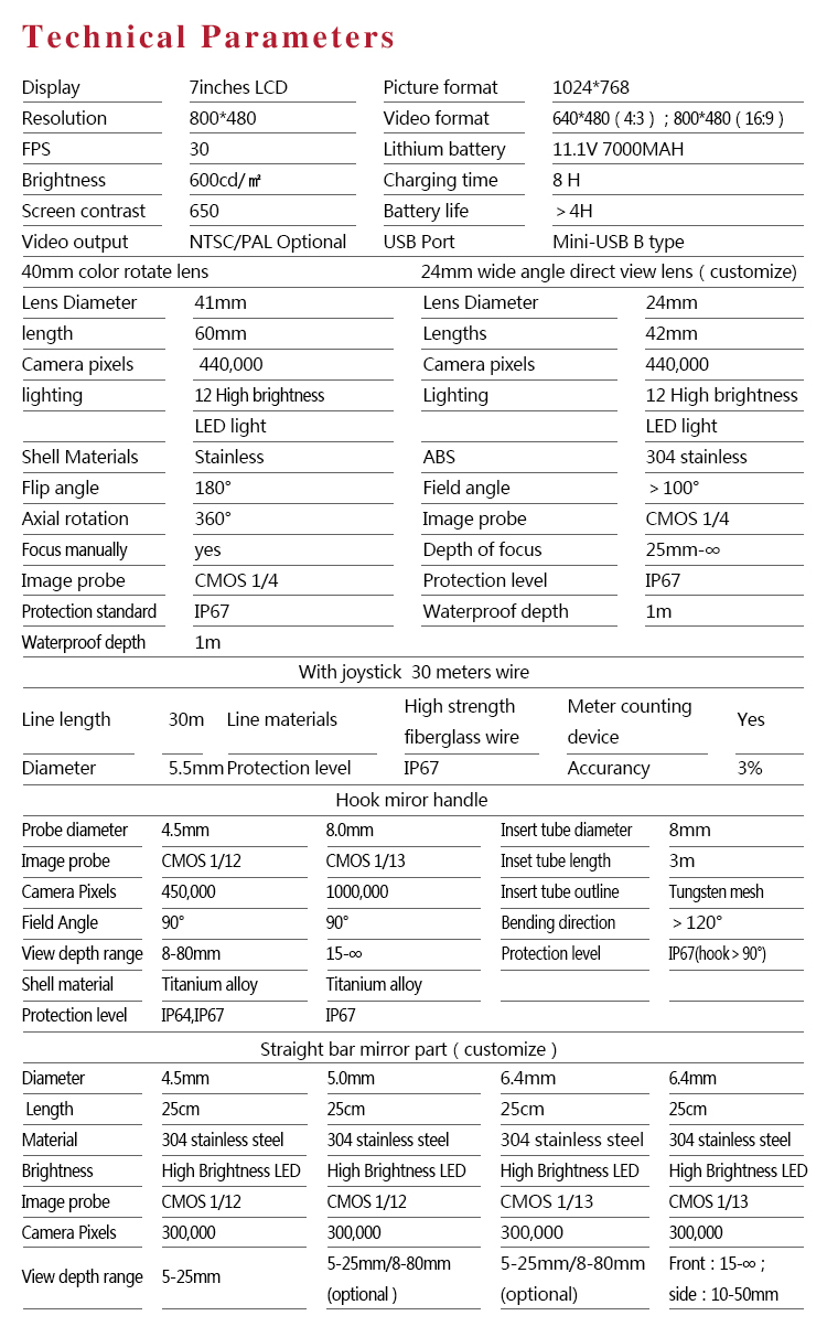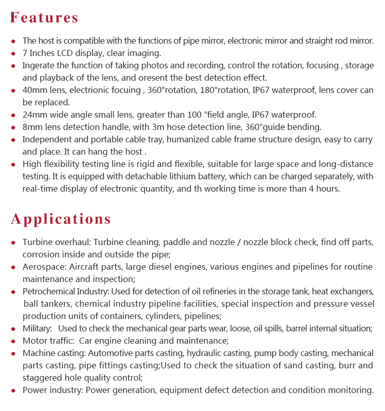 l The host is compatible with the functions of pipe mirror, electronic mirror and straight rod mirror.