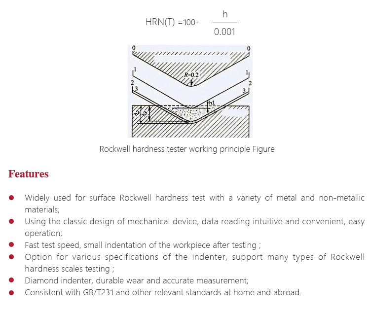 Instrument Featuresl Widely used for surface Rockwell hardness test with a variety of metal and non-metallic materials;