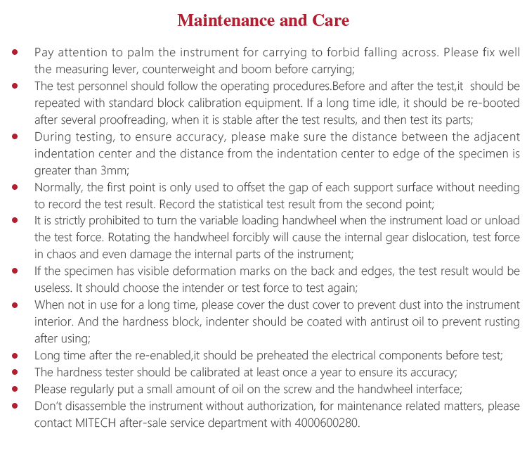 l The hardness tester should be calibrated at least once a year to ensure its accuracy;