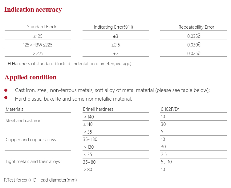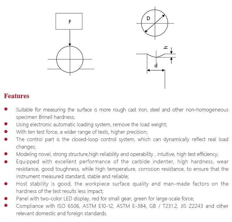 l Suitable for measuring the surface is more rough cast iron, steel and other non-homogeneous specimen Brinell hardness;