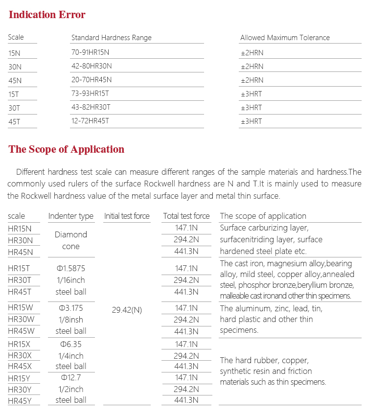 | Rockwell scale | HR15N 、HR30N 、HR45N 、HR15T 、HR30T 、HR45T |