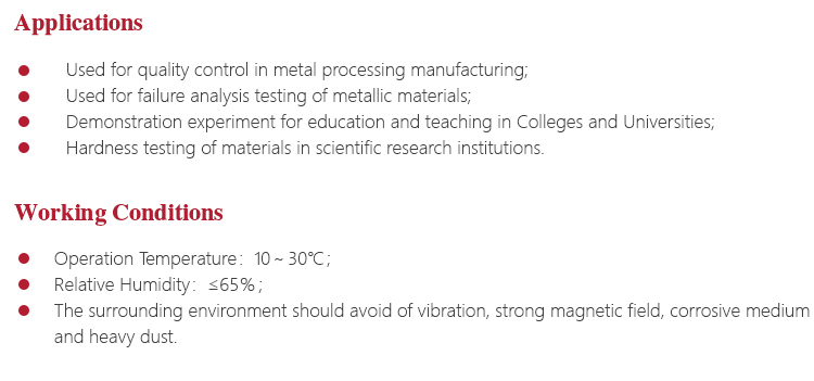 l Widely used for high-precision hardness testing for parts with a variety of metal and non-metallic materials;