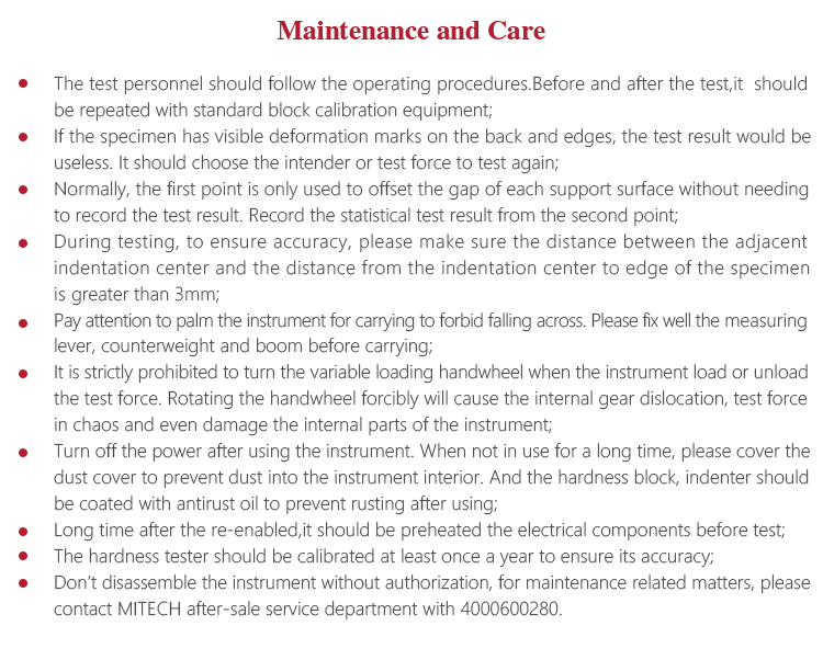 dust into the instrument interior. And the hardness block, indenter should be coated with antirust oil to prevent rusting