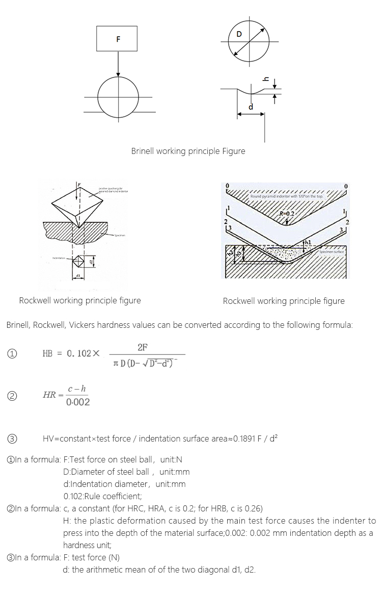 Brinell hardness test: Test force(F) is on the steel ball with certain diameter(D) , pressed on sample surface. After a period of time, cancel the force. The indentation diameter is get by measuring with micrometer ocular,thus to calculate the average pressure(N/mm2).Then we can get the Brinell hardness.