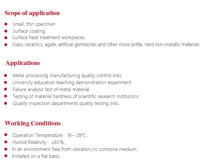 etc.Vickers hardness test to meet different demands of scientific research institutions, precision machining and quality
