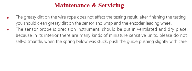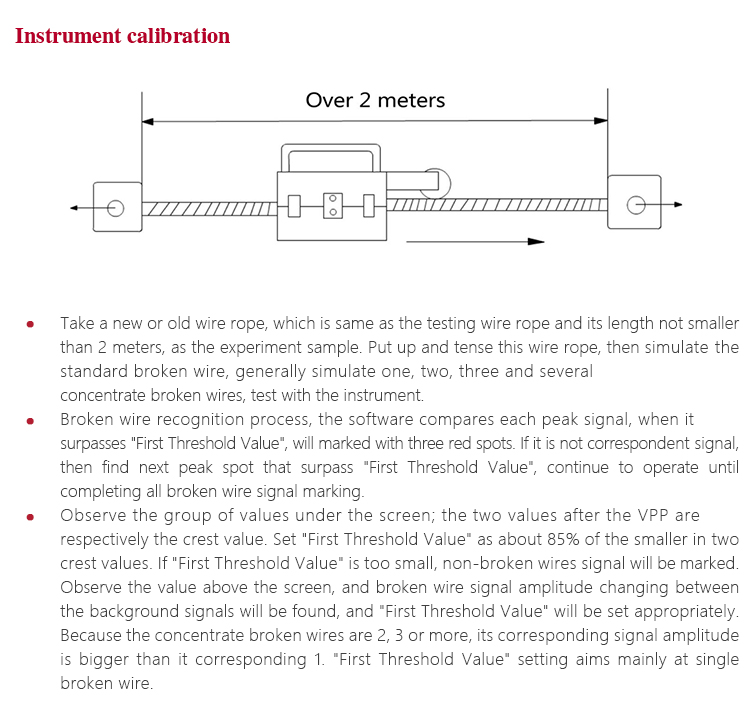 It is widely used in all kinds of industries of hoisting machinery, coal mine hoist, the oil field mining machine, elevator, cableway, port machinery, cable bridge, mine, oil wells, wharf, shipbuilding, war industry, water conservancy, electric power, railway, construction and other industries related with testing broken wires on wire rope and the wear.