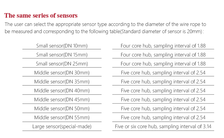 • wire rope diameter range Φ1.5—300 mm (with different sensors)
