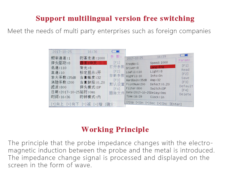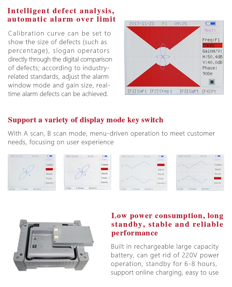 l Using eddy current impedance plane and time base scan display technology, real-time multi-window display with the same