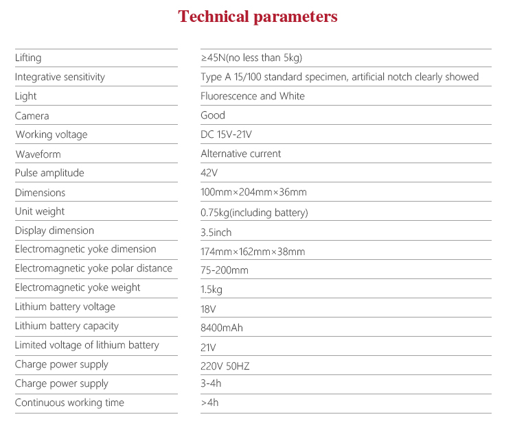 distance: 75-200mm, Electromagnetic yoke Weight: 1.5kg.The use of pulsating power supply technology,