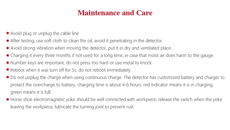 Instrument Maintenancel Digital portable magnetic flaw detector is precision detector, please note the following,
