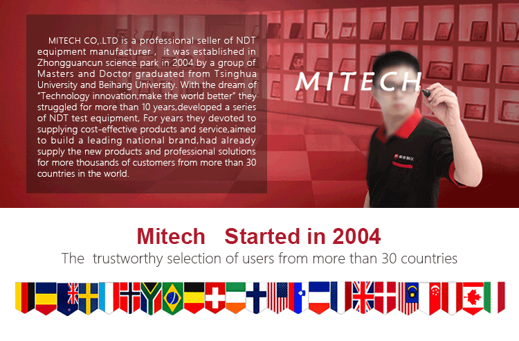 MITECH CDX-III Multi-functional magnetic flaw detector is based on the interaction of magnetic field leakage and powder. It can accurately show the shape of the leakage, as well as its position, size and severity, thus tells the damage level.The instrument uses a variety of magnetization methods, can detect all parts of the workpiece, widely used in petroleum, chemical, metallurgical, shipbuilding,aviation, railway and other areas of defect detection. It is a necessary professional precision instrument of quality control, in-service safety monitoring and life assessment. |