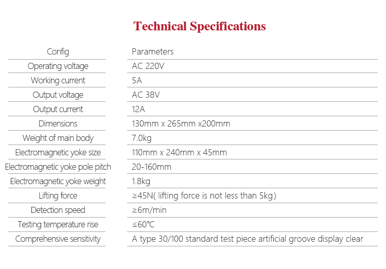 Working PrincipleMagnetizing, put the workpiece in the magnetic field, connect electric to make it magnetized, if there are flaws(crack,slag), magnetic-curve will leakage on the flaws, when put magnetic participle on the workpiece, the magnetic field will catch the participle and pile up