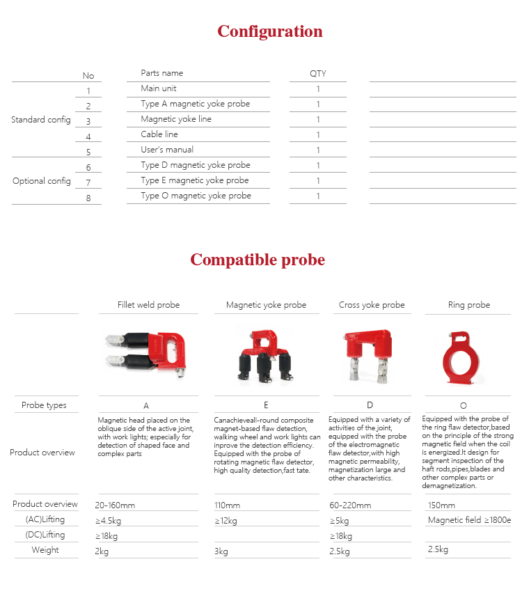 | Type D magnetic yoke probe | |