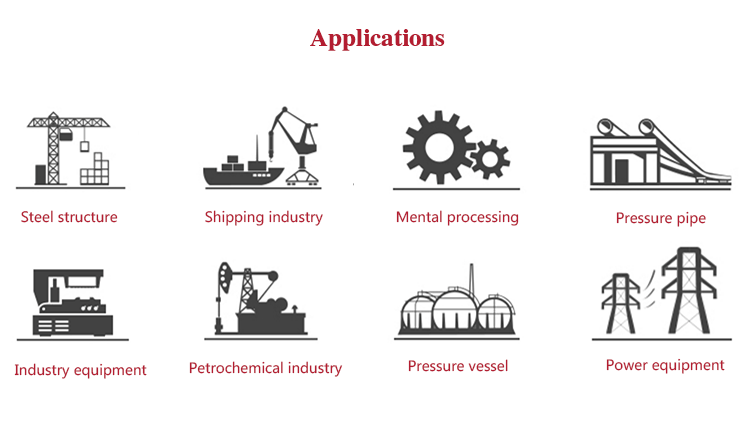 Function & applicationIt is widely used in the industry of aircraft manufacturing, boiler and pressure vessel, electric, oil field, shipbuilding, turbine and combustion engine parts, mine, machinery, standard parts, oil pump, vehicle parts, bridging, chemical, railway, large mechanical components, steel structure equipment etc.