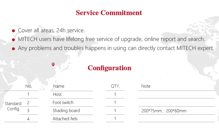 l Don’t disassemble the instrument without authorization, maintenance related matter, please contact MITECH after sale service department with 4000600280.