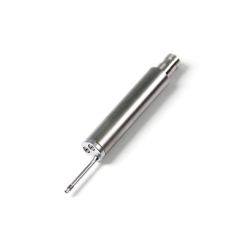 | The tiny-hole sensor of Mitech portable surface roughness tester MR200, with totally length of 77mm, main body length of 46mm, guide-head bearer length of 19.6mm, main body diameter of Φ10mm, core-insert sleeve diameter of Φ7mm, guide-head height of 2mm, It is the optional configuration of the surface roughness tester, mainly used for measuring the inner surface roughness of the circular hole with a diameter larger than 2.5mm. And its other usage is the same as the standard sensor. | |