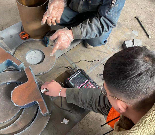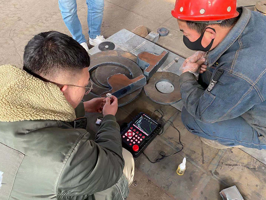 美泰工程師又對(duì)儀器界面,功能操作進(jìn)行了演示教學(xué)?,F(xiàn)場(chǎng)工件種類較多,美泰工程師選擇了 2.5MHz φ20直探頭和2.5MHz 13×13 K2斜探頭,以適應(yīng)不同工件的檢測(cè)需求。美泰MUT550B超聲波探傷儀智能操作系統(tǒng)易于新手學(xué)習(xí),客戶現(xiàn)場(chǎng)技術(shù)人員迅速掌握了基本操作并在美泰工程師指導(dǎo)下著手探傷檢測(cè)。培訓(xùn)結(jié)束后,客戶對(duì)美泰的產(chǎn)品和美泰工程師的專業(yè)服務(wù)表示高度贊譽(yù)。