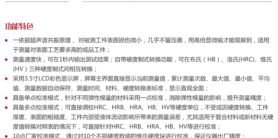 儀器特點依據(jù)超聲波共振原理,對被測工件表面無壓痕損傷,適用于測量對表面工藝要求高的成品工件;