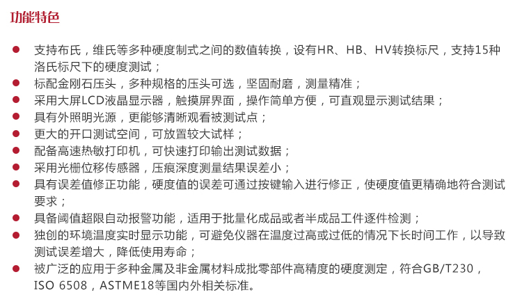 被廣泛的應(yīng)用于多種金屬及非金屬材料成批零部件高精度的硬度測定,符合GB/T230,ISO 6508,ASTME18等國內(nèi)外相關(guān)標準。