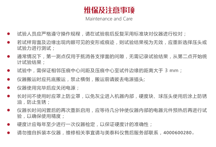 儀器的保養(yǎng)與維護試驗人員應(yīng)嚴格遵守操作規(guī)程,請在試驗前后反復(fù)采用標準塊對儀器進行校對;