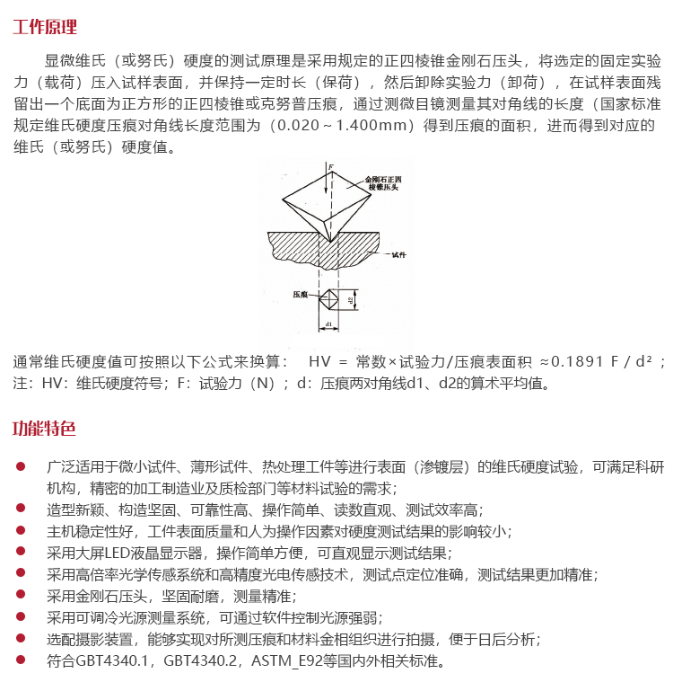 符合GBT4340.1,GBT4340.2,ASTM_E92等國(guó)內(nèi)外相關(guān)標(biāo)準(zhǔn)。