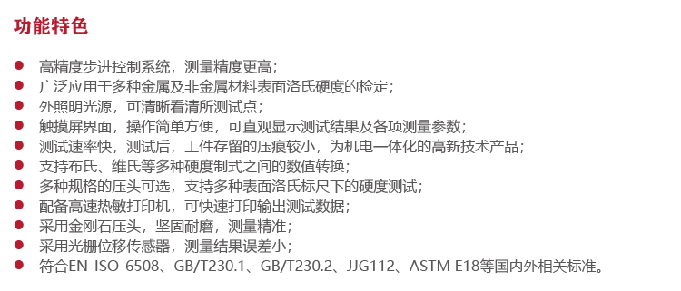 ?符合EN-ISO-6508、GB/T230.1、GB/T230.2、JJG112、ASTM E18等國內(nèi)外相關(guān)標(biāo)準(zhǔn)。