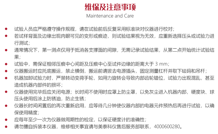 儀器的保養(yǎng)與維護?試驗人員應嚴格遵守操作規(guī)程,請在試驗前后反復采用標準塊對儀器進行校對;