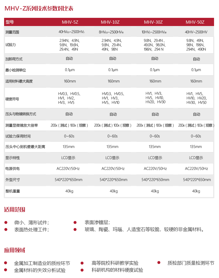 | 測量范圍 | 10HV2~2500HV30 |