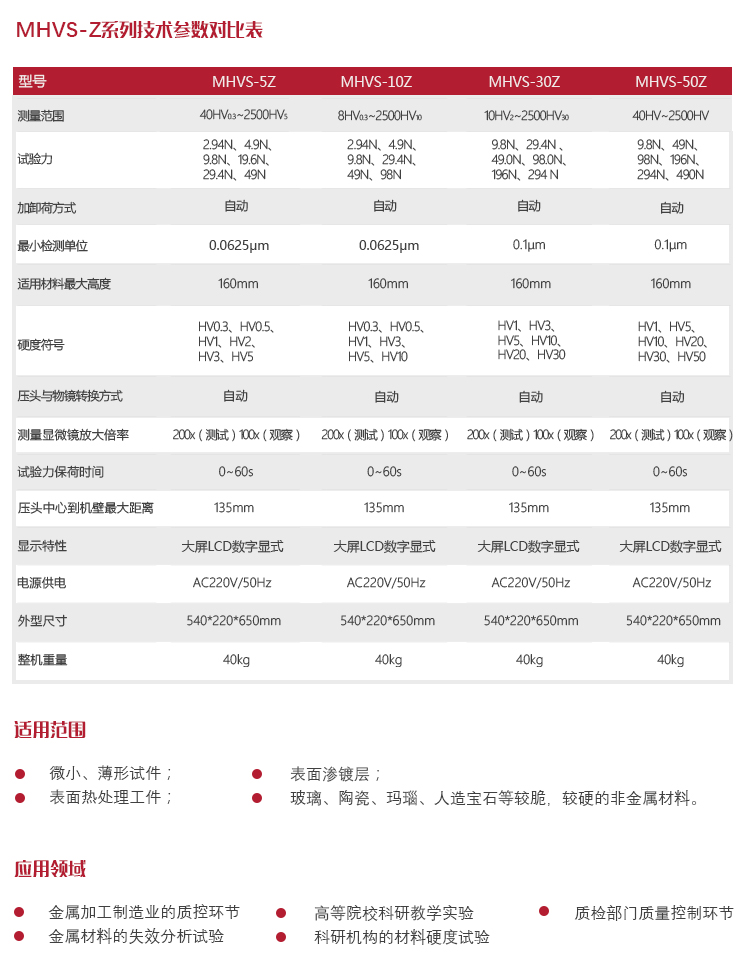 | 試驗(yàn)力 | 詳見(jiàn)MHVS-Z系列技術(shù)參數(shù)對(duì)比表 |