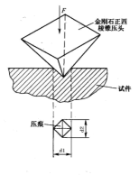 通常維氏硬度值可按照以下公式來(lái)?yè)Q算: HV = 常數(shù)×試驗(yàn)力/壓痕表面積 ≈0.1891 F/d2 ;