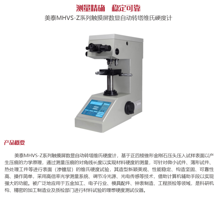 ?廣泛適用于微小試件、薄形試件、熱處理工件等進(jìn)行表面(滲鍍層)的維氏硬度試驗(yàn),可滿足科研機(jī)構(gòu),精密的加工制造業(yè)及質(zhì)檢部門(mén)等材料試驗(yàn)的需求;