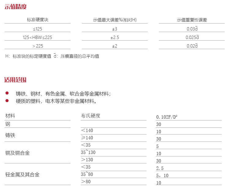 | 布氏標尺 | HBW2.5/62.5、HBW2.5/187.5、HBW5/125、HBW5/250、HBW5/750、HBW10/100、HBW10/1500、HBW10/3000、HBW10/250、HBW10/ |