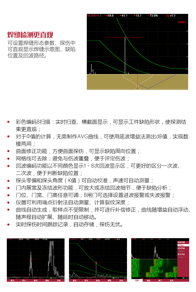 | 定位 | 實時顯示缺陷水平、深度(垂直)、聲程位置 |